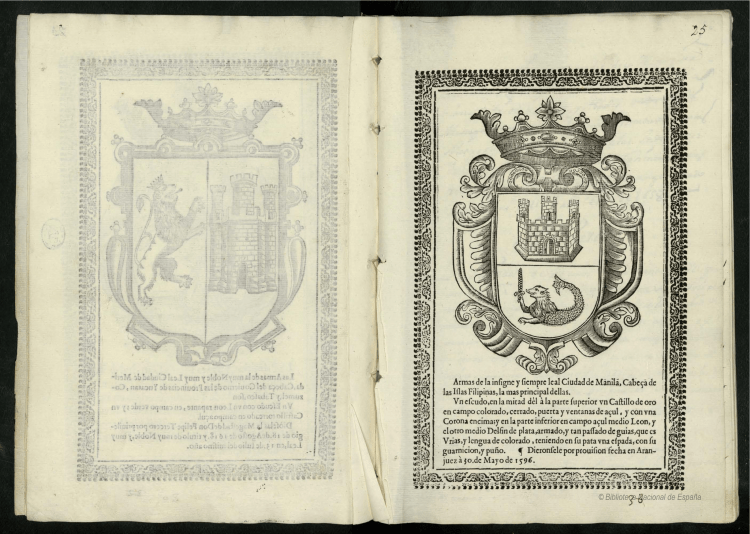 In a Royal Decree by Philip II, dated 20 March 1596, the City of Manila was officially “ennobled” when it was granted its own coat of arms. The blazon, as indicated in the decree, is roughly translated by Blair and Robertson as follows: