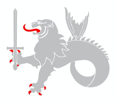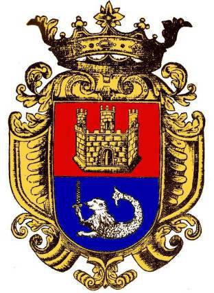 “…a shield which shall have in the center of its upper part a golden castle on a redfield, closed by a blue door and windows, and which shall be surmounted by a crown; and in the lower half on a blue field a half lion and half dolphin of silver, armed and langued gules–that is to say, with red nails and tongue. The said lion shall hold in his paw a sword with guard and hilt…”