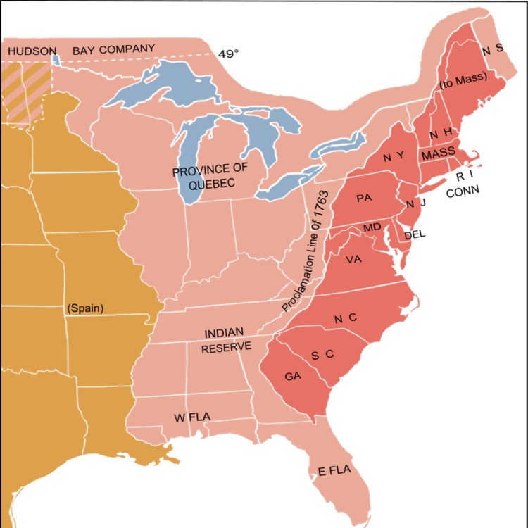 For the Thirteen Colonies: Wikimedia Commons. The Thirteen Colonies (shown in red) in 1775. Retrieved 25 Jun 2020 from bit. ly /2Vef7cA