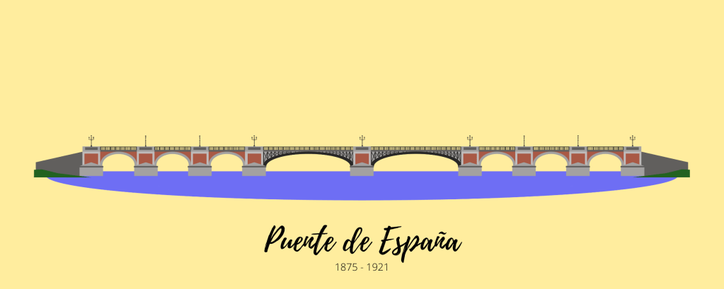 During the American colonial period, the roadway on the bridge was expanded to accommodate more vehicles and the new tranvia or trams. Severe flooding in 1914 damaged the central pier of the bridge. The city decided to build a more modern bridge to replace the aging Bridge of Spain. The damaged section was replaced by a temporary steel truss while work on a new bridge commenced.