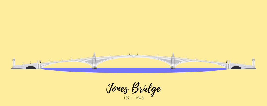 The new post-war Jones Bridge was a far cry from its prewar namesake. It was basically an ordinary reinforce concrete bridge. Through the years, some attempts at beautification were done to this nondescript and dingy bridge. The 2019 beautification is so far the most successful and whole hearted attempt to recapture the grandeur of the prewar Jones Bridge and turn this blight of a bridge into a city landmark.