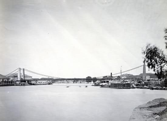 IN 1849, work begun on a bridge connecting Quiapo to the south. It was spearheaded anad later operated by the Matia, Menchacatorre y Compañía. The new bridge was built using modern methods. Instead of masonry arches, the bridge was built as a suspension bridge, supported by four towers (two on both sides of the river).