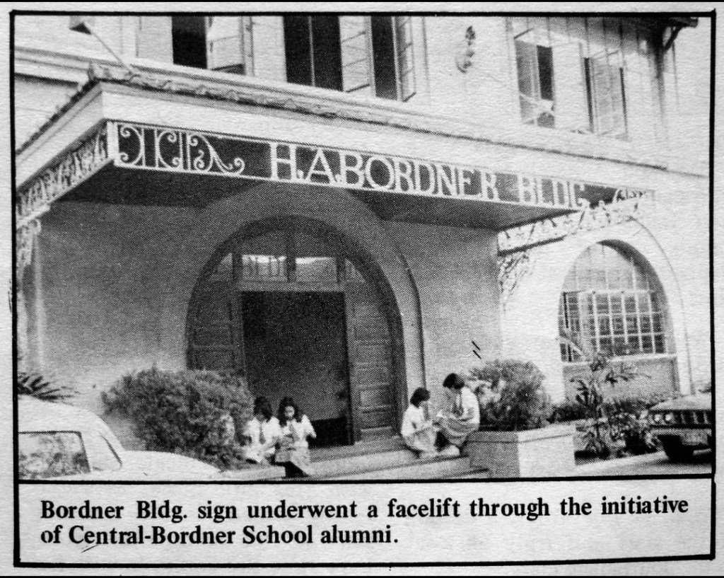 H. A. Bordner Building served as a new home to the special science students in 1967. Before then their classes were held at the “Victoria Annex”, which now houses the Pamantasan ng Lungsod ng Maynila (PLM) within Intramuros as decided by the Manila city government. Bordner Building was renovated in 1977 before its white and blue signage was restored in 1986 with the efforts of the Central-Bordner School alumni led by Mr. Harris Wightman.
