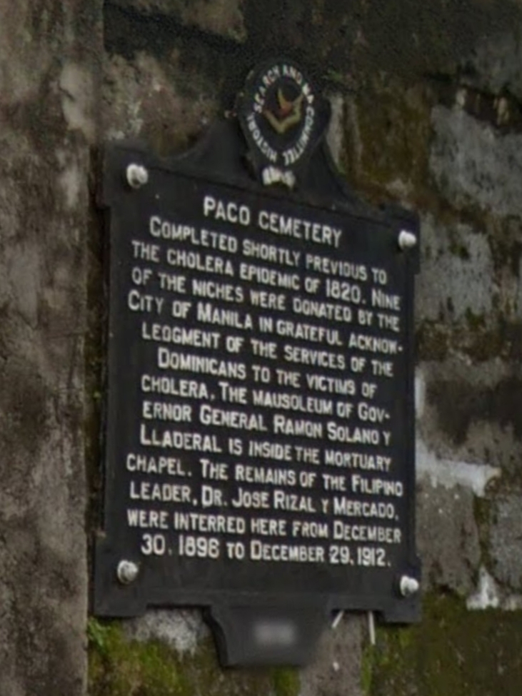 Our National hero Dr. Jose Rizal was also buried originally in Paco Cemetery after his execution at Bagumbayan in 1896. His remains were exhumed in 1898, but a cross (with his reversed initials “RPJ”) still marks his gravesite within the park.