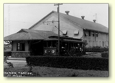 “The electric line started at the North Mine Wharf and connected junctions to Lorcha Dock and a junction to the South Mine Wharf . A junction was also built to connect Engineers Wharf From here a line ran to Barrio San Jose. Later, when Malinta tunnel was built, a line passed through it. The first station was at halfway to Middleside, serving the Corregidor Intermediate School , barracks and the stockade. From here a series of station were built that led to the end of the trolley line, just in front of the Mile Long Barracks at Topside. A car barn was located in front of the Ordnance Machine Shop, close to Topside.” Caption quoted from The Corregidor Railway System of the Corregidor Historic Society.