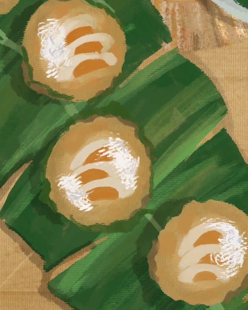 It is widely seen that bibingka, alongside with puto bumbong, were cooked and sold beside or near the church, after a ‘Simbang gabi’. From glutinous rice called galapong is soaked overnight either in water or milk, and sprinkled with yeast. As it forms a thick paste, eggs and milk are added. It is commonly served during the nine-day novena masses, since friars and farmers ago will immediately eat something heavy after the mass; therefore, it has been a tradition for many Filipinos to serve bibingka after a Simbang gabi.