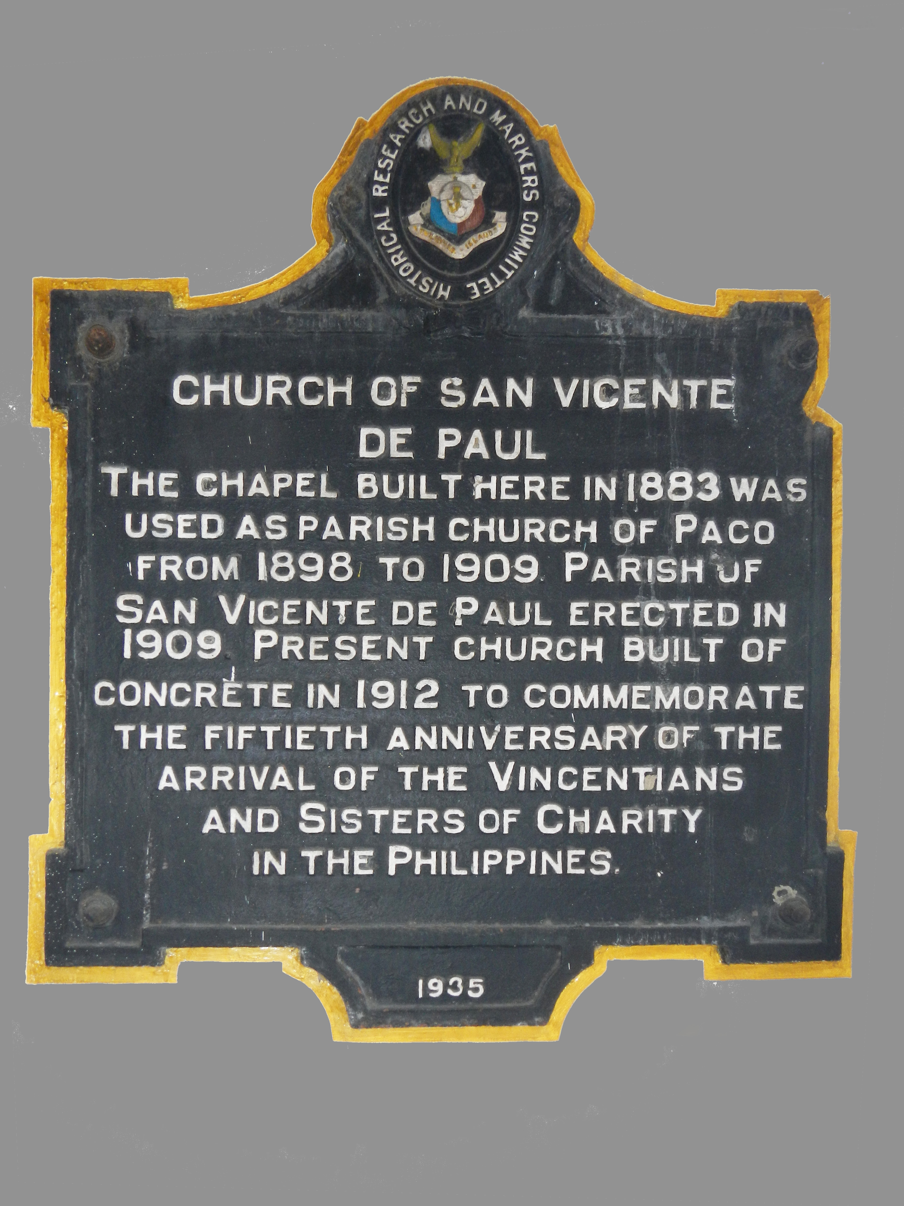 - Historical Marker. (1935). Church of San Vicente de Paul, San Marcelino St., Ermita, Manila.